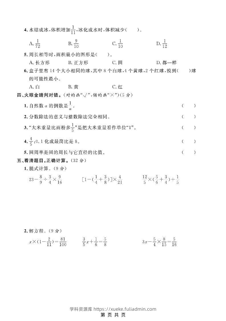 六上西师版数学【期末测试卷7】学科资源库13天前发布关注私信519六上西师版数学【期末测试卷7】此内容为付费资源,请付费后查看¥10黄金会员免费钻石会员免费立即购买您当前未登录!建议登陆后购买,可保存购买订单格式pdf页数5 页大小761.92 KB付费资源 ——预览已结束,还剩3页未读——开通会员后可免费下载高清完整文档 © 版权声明文章版权归作者所有,未经允许请勿转载。THE END小学数学 喜欢就支持一下吧点赞9 分享QQ空间微博QQ好友海报分享复制链接收藏