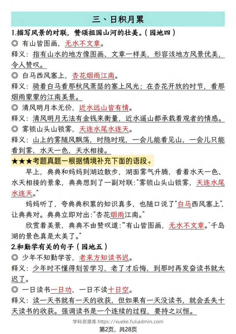 25秋二上语文期末复习知识点(押题考点)28页学科资源库7天前发布关注私信30825秋二上语文期末复习知识点(押题考点)28页此内容为付费资源,请付费后查看¥10黄金会员免费钻石会员免费立即购买您当前未登录!建议登陆后购买,可保存购买订单格式pdf页数28 页大小11.02 MB付费资源 ——预览已结束,还剩26页未读——开通会员后可免费下载高清完整文档 © 版权声明文章版权归作者所有,未经允许请勿转载。THE END小学语文 喜欢就支持一下吧点赞8 分享QQ空间微博QQ好友海报分享复制链接收藏