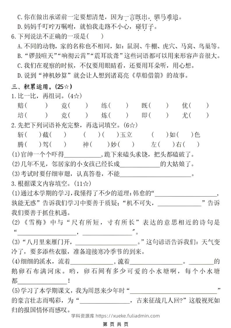 四年级上语文期末名校真题测试卷2学科资源库6天前发布关注私信3712四年级上语文期末名校真题测试卷2此内容为付费资源,请付费后查看¥10黄金会员免费钻石会员免费立即购买您当前未登录!建议登陆后购买,可保存购买订单格式pdf页数6 页大小2.78 MB付费资源 ——预览已结束,还剩4页未读——开通会员后可免费下载高清完整文档 © 版权声明文章版权归作者所有,未经允许请勿转载。THE END小学语文 喜欢就支持一下吧点赞12 分享QQ空间微博QQ好友海报分享复制链接收藏