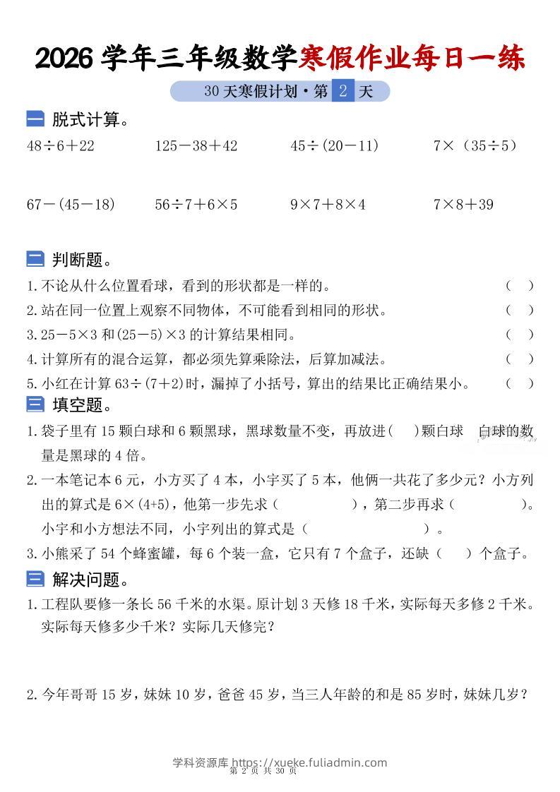 26学年三年级数学上寒假作业每日一练30天复习预习(含答案60页)学科资源库4天前发布关注私信451026学年三年级数学上寒假作业每日一练30天复习预习(含答案60页)此内容为付费资源,请付费后查看¥10黄金会员免费钻石会员免费立即购买您当前未登录!建议登陆后购买,可保存购买订单格式pdf页数60 页大小16.01 MB付费资源 ——预览已结束,还剩58页未读——开通会员后可免费下载高清完整文档 © 版权声明文章版权归作者所有,未经允许请勿转载。THE END小学数学 喜欢就支持一下吧点赞10 分享QQ空间微博QQ好友海报分享复制链接收藏