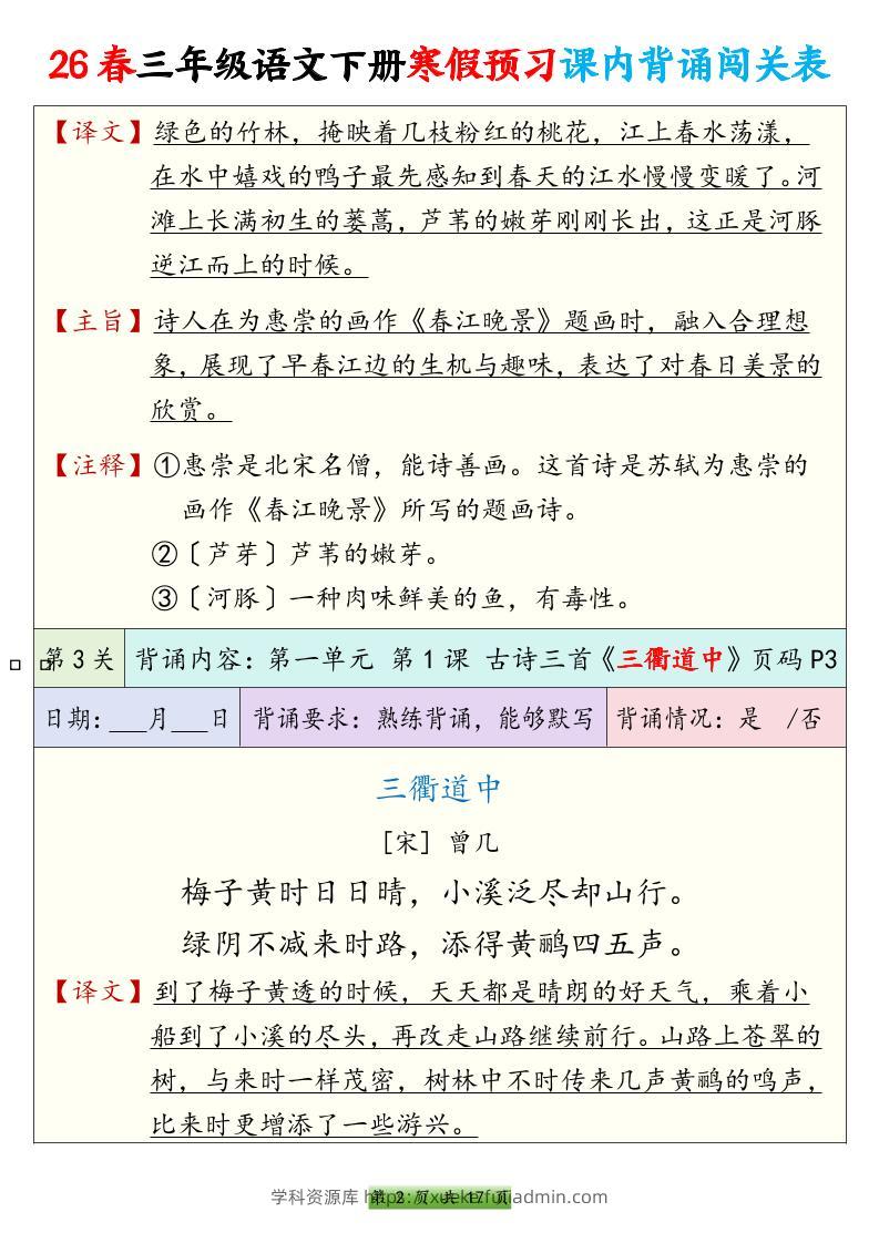 26春三下语文寒假预习课内背诵表17页学科资源库前天发布关注私信341226春三下语文寒假预习课内背诵表17页此内容为付费资源,请付费后查看¥10黄金会员免费钻石会员免费立即购买您当前未登录!建议登陆后购买,可保存购买订单格式pdf页数17 页大小1.52 MB付费资源 ——预览已结束,还剩15页未读——开通会员后可免费下载高清完整文档 © 版权声明文章版权归作者所有,未经允许请勿转载。THE END小学语文 喜欢就支持一下吧点赞12 分享QQ空间微博QQ好友海报分享复制链接收藏