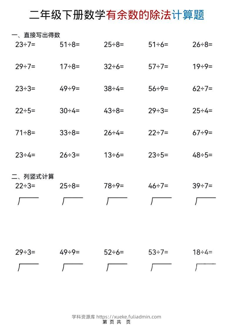二年级下数学《有余数的除法》计算题学科资源库昨天发布关注私信476二年级下数学《有余数的除法》计算题此内容为付费资源,请付费后查看¥10黄金会员免费钻石会员免费立即购买您当前未登录!建议登陆后购买,可保存购买订单格式pdf页数18 页大小2.78 MB付费资源 ——预览已结束,还剩16页未读——开通会员后可免费下载高清完整文档 © 版权声明文章版权归作者所有,未经允许请勿转载。THE END小学数学 喜欢就支持一下吧点赞6 分享QQ空间微博QQ好友海报分享复制链接收藏