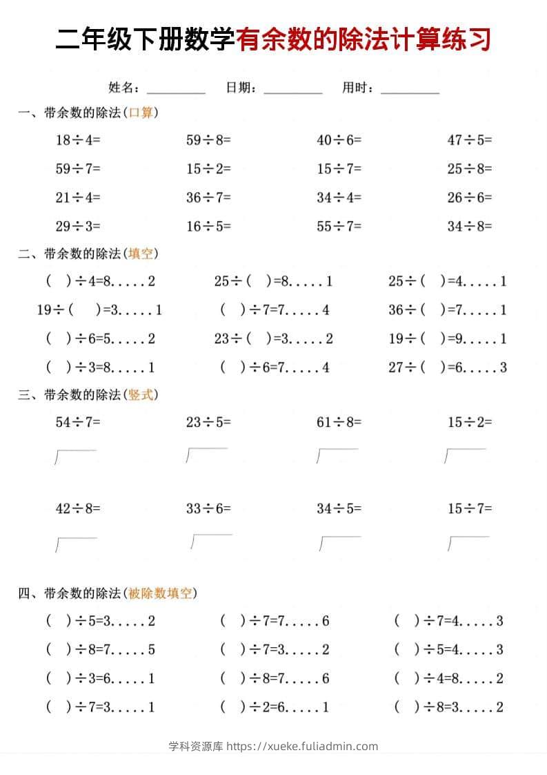 二年级下数学《有余数的除法》计算练习学科资源库5小时前发布关注私信4810二年级下数学《有余数的除法》计算练习此内容为付费资源,请付费后查看¥10黄金会员免费钻石会员免费立即购买您当前未登录!建议登陆后购买,可保存购买订单格式pdf页数4 页大小1.42 MB付费资源 ——预览已结束,还剩2页未读——开通会员后可免费下载高清完整文档 © 版权声明文章版权归作者所有,未经允许请勿转载。THE END小学数学 喜欢就支持一下吧点赞10 分享QQ空间微博QQ好友海报分享复制链接收藏
