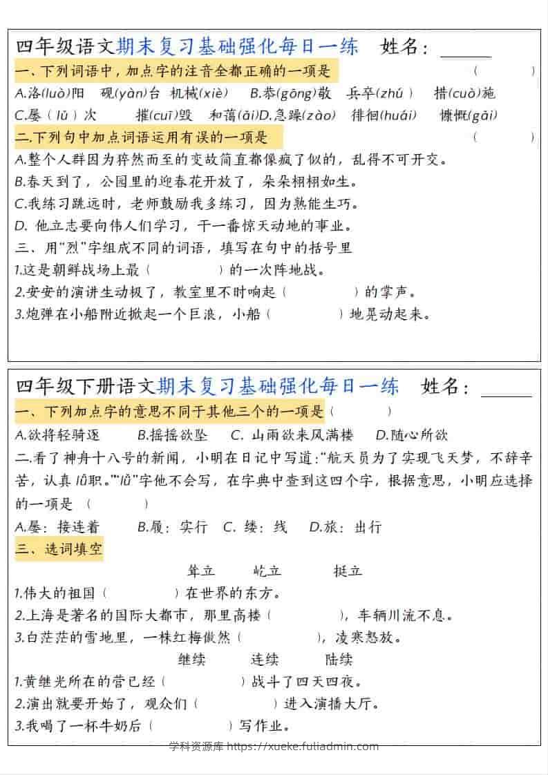 四年级下语文期末复习基础强化每日一练学科资源库2小时前发布关注私信367四年级下语文期末复习基础强化每日一练此内容为付费资源,请付费后查看¥10黄金会员免费钻石会员免费立即购买您当前未登录!建议登陆后购买,可保存购买订单格式pdf页数8 页大小2.81 MB付费资源 ——预览已结束,还剩6页未读——开通会员后可免费下载高清完整文档 © 版权声明文章版权归作者所有,未经允许请勿转载。THE END小学语文 喜欢就支持一下吧点赞7 分享QQ空间微博QQ好友海报分享复制链接收藏