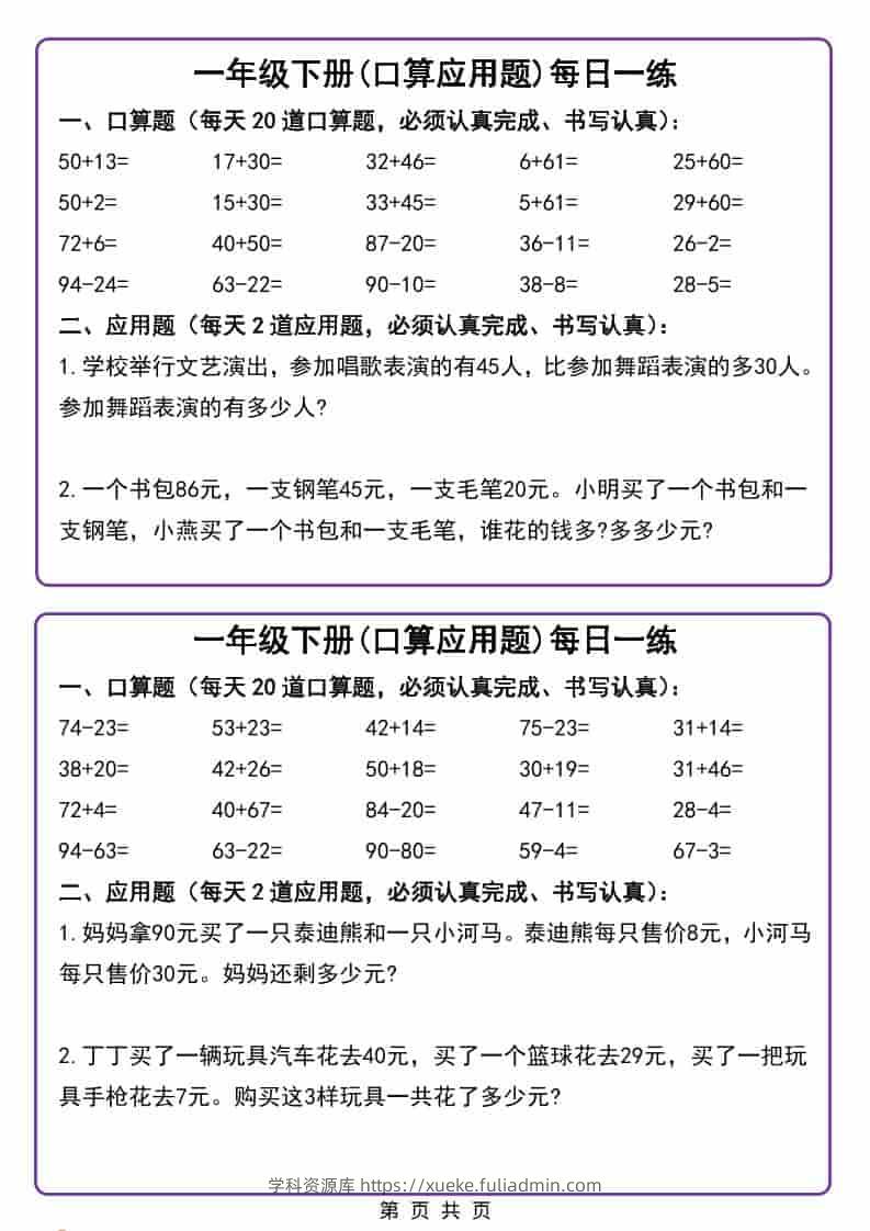 一年级下数学口算应用题每日一练学科资源库7小时前发布关注私信316一年级下数学口算应用题每日一练此内容为付费资源,请付费后查看¥10黄金会员免费钻石会员免费立即购买您当前未登录!建议登陆后购买,可保存购买订单格式pdf页数6 页大小131.19 KB付费资源 ——预览已结束,还剩4页未读——开通会员后可免费下载高清完整文档 © 版权声明文章版权归作者所有,未经允许请勿转载。THE END小学数学 喜欢就支持一下吧点赞6 分享QQ空间微博QQ好友海报分享复制链接收藏