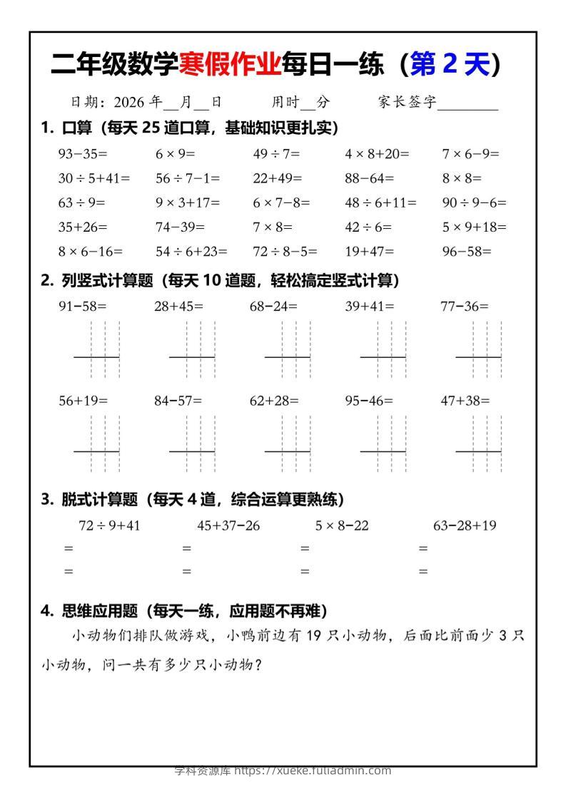 26春二年级数学下寒假作业每日一练30天(口算竖式脱式应用题)30页学科资源库7小时前发布关注私信381326春二年级数学下寒假作业每日一练30天(口算竖式脱式应用题)30页此内容为付费资源,请付费后查看¥10黄金会员免费钻石会员免费立即购买您当前未登录!建议登陆后购买,可保存购买订单格式pdf页数30 页大小6.47 MB付费资源 ——预览已结束,还剩28页未读——开通会员后可免费下载高清完整文档 © 版权声明文章版权归作者所有,未经允许请勿转载。THE END小学数学 喜欢就支持一下吧点赞13 分享QQ空间微博QQ好友海报分享复制链接收藏
