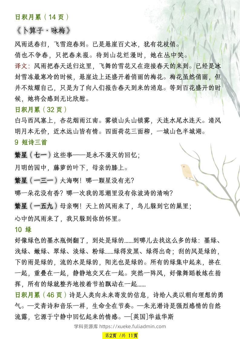 四下语文全册重点必背篇目【古诗、课文、日积月累】学科资源库6小时前发布关注私信2414四下语文全册重点必背篇目【古诗、课文、日积月累】此内容为付费资源,请付费后查看¥10黄金会员免费钻石会员免费立即购买您当前未登录!建议登陆后购买,可保存购买订单格式pdf页数11 页大小2.63 MB付费资源 ——预览已结束,还剩9页未读——开通会员后可免费下载高清完整文档 © 版权声明文章版权归作者所有,未经允许请勿转载。THE END小学语文 喜欢就支持一下吧点赞14 分享QQ空间微博QQ好友海报分享复制链接收藏