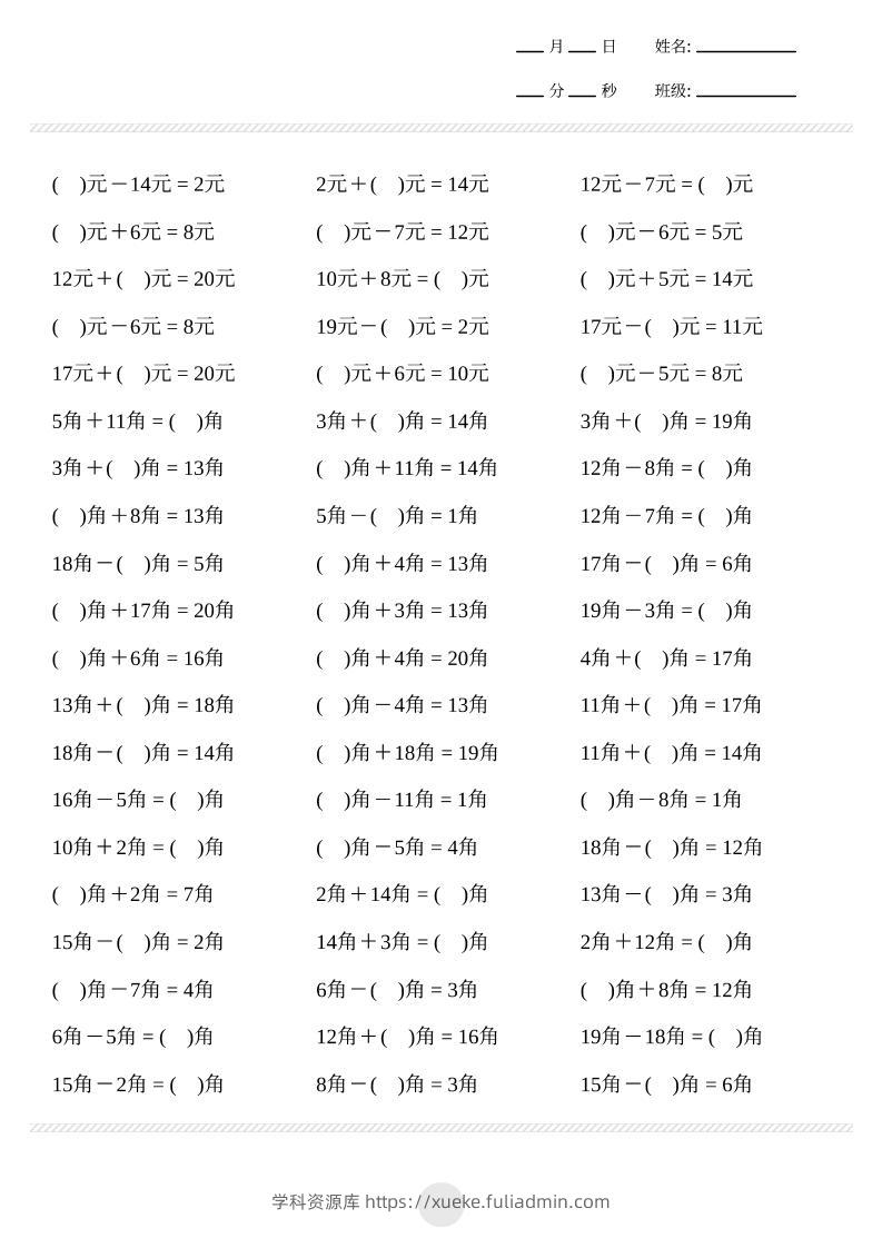 一年级下数学元角分计算专项练习1000题学科资源库昨天发布关注私信309一年级下数学元角分计算专项练习1000题此内容为付费资源,请付费后查看¥10黄金会员免费钻石会员免费立即购买您当前未登录!建议登陆后购买,可保存购买订单格式pdf页数17 页大小757.80 KB付费资源 ——预览已结束,还剩15页未读——开通会员后可免费下载高清完整文档 © 版权声明文章版权归作者所有,未经允许请勿转载。THE END小学数学 喜欢就支持一下吧点赞9 分享QQ空间微博QQ好友海报分享复制链接收藏