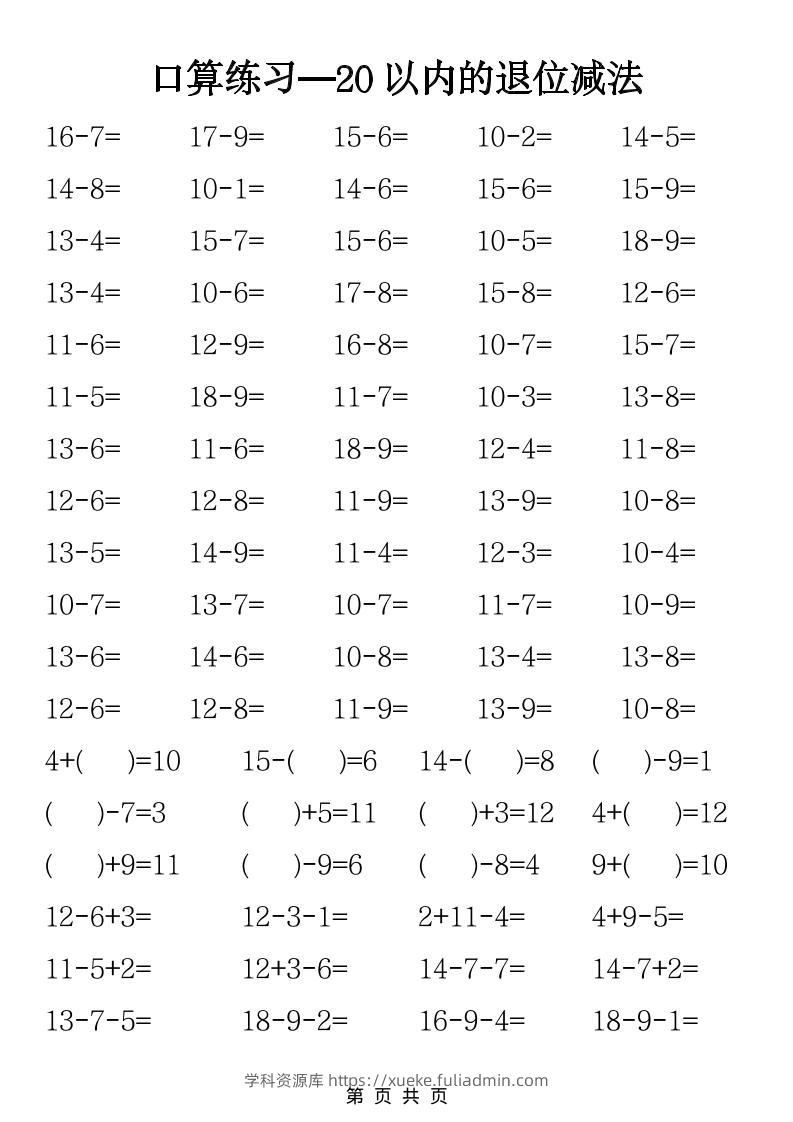 一年级下数学20以内退位减法口算练习学科资源库6小时前发布关注私信2113一年级下数学20以内退位减法口算练习此内容为付费资源,请付费后查看¥10黄金会员免费钻石会员免费立即购买您当前未登录!建议登陆后购买,可保存购买订单格式pdf页数5 页大小128.46 KB付费资源 ——预览已结束,还剩3页未读——开通会员后可免费下载高清完整文档 © 版权声明文章版权归作者所有,未经允许请勿转载。THE END小学数学 喜欢就支持一下吧点赞13 分享QQ空间微博QQ好友海报分享复制链接收藏