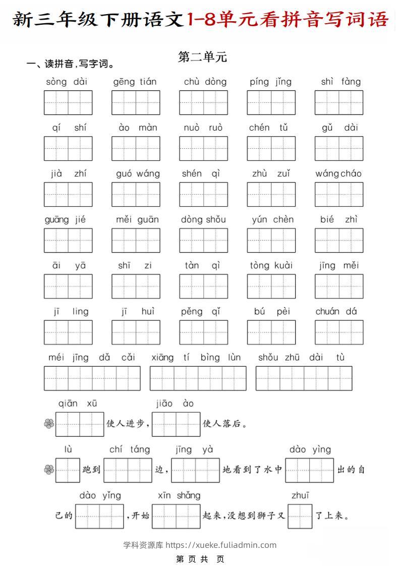 三年级下语文1-8单元看拼音写词语学科资源库6小时前发布关注私信2011三年级下语文1-8单元看拼音写词语此内容为付费资源,请付费后查看¥10黄金会员免费钻石会员免费立即购买您当前未登录!建议登陆后购买,可保存购买订单格式pdf页数10 页大小3.95 MB付费资源 ——预览已结束,还剩8页未读——开通会员后可免费下载高清完整文档 © 版权声明文章版权归作者所有,未经允许请勿转载。THE END小学语文 喜欢就支持一下吧点赞11 分享QQ空间微博QQ好友海报分享复制链接收藏