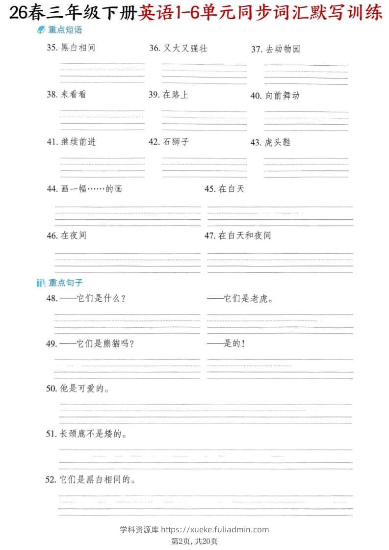 三年级下英语同步词汇默写训练《外研版(三起)》学科资源库18小时前发布关注私信299三年级下英语同步词汇默写训练《外研版(三起)》此内容为付费资源,请付费后查看¥10黄金会员免费钻石会员免费立即购买您当前未登录!建议登陆后购买,可保存购买订单格式pdf页数20 页大小3.92 MB付费资源 ——预览已结束,还剩18页未读——开通会员后可免费下载高清完整文档 © 版权声明文章版权归作者所有,未经允许请勿转载。THE END小学英语 喜欢就支持一下吧点赞9 分享QQ空间微博QQ好友海报分享复制链接收藏