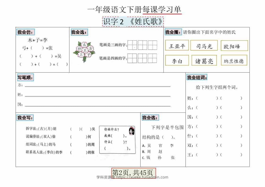一年级下语文每课学习单学科资源库昨天发布关注私信395一年级下语文每课学习单此内容为付费资源,请付费后查看¥10黄金会员免费钻石会员免费立即购买您当前未登录!建议登陆后购买,可保存购买订单格式pdf页数45 页大小20.16 MB付费资源 ——预览已结束,还剩43页未读——开通会员后可免费下载高清完整文档 © 版权声明文章版权归作者所有,未经允许请勿转载。THE END小学语文 喜欢就支持一下吧点赞5 分享QQ空间微博QQ好友海报分享复制链接收藏
