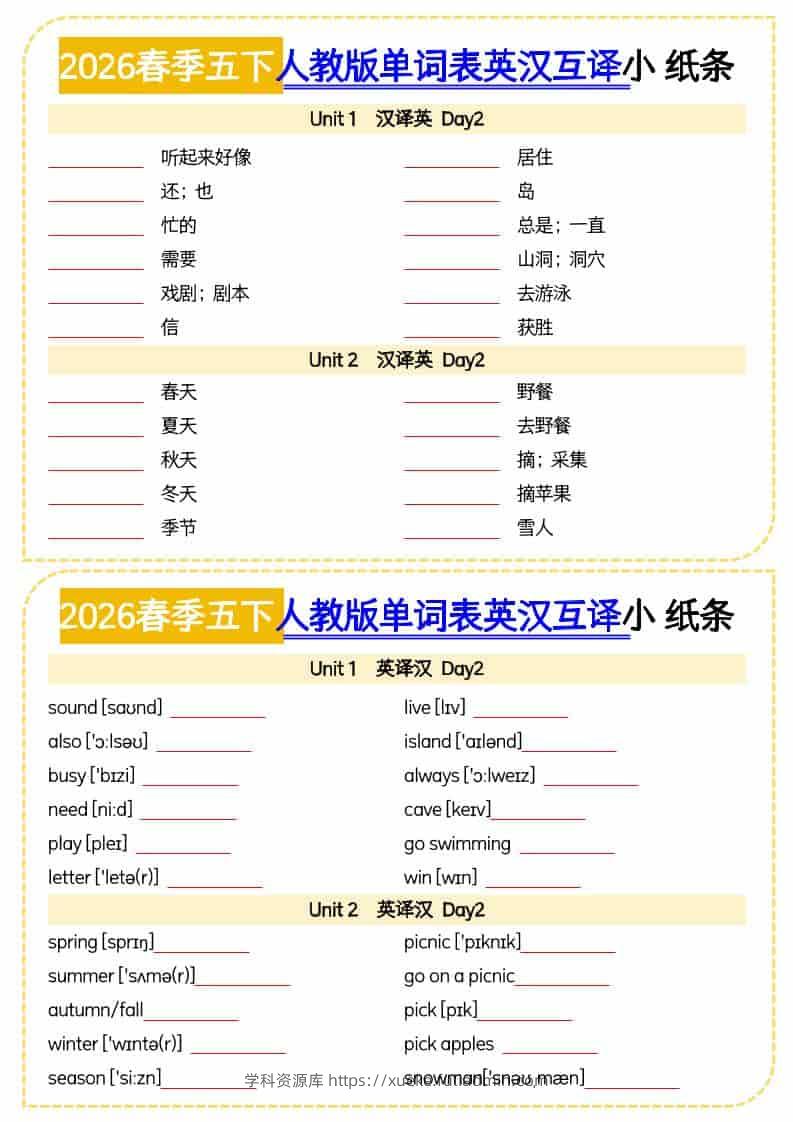 五年级下英语单词英汉互译小纸条《人教版PEP》学科资源库4小时前发布关注私信5114五年级下英语单词英汉互译小纸条《人教版PEP》此内容为付费资源,请付费后查看¥10黄金会员免费钻石会员免费立即购买您当前未登录!建议登陆后购买,可保存购买订单格式pdf页数7 页大小249.28 KB付费资源 ——预览已结束,还剩5页未读——开通会员后可免费下载高清完整文档 © 版权声明文章版权归作者所有,未经允许请勿转载。THE END小学英语 喜欢就支持一下吧点赞14 分享QQ空间微博QQ好友海报分享复制链接收藏