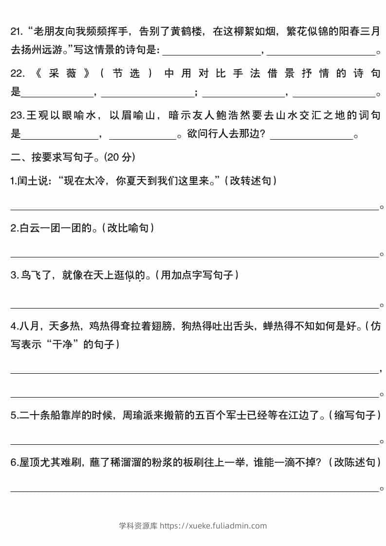 五年级下语文句子专项训练(含答案)学科资源库昨天发布关注私信395五年级下语文句子专项训练(含答案)此内容为付费资源,请付费后查看¥10黄金会员免费钻石会员免费立即购买您当前未登录!建议登陆后购买,可保存购买订单格式pdf页数8 页大小365.18 KB付费资源 ——预览已结束,还剩6页未读——开通会员后可免费下载高清完整文档 © 版权声明文章版权归作者所有,未经允许请勿转载。THE END小学语文 喜欢就支持一下吧点赞5 分享QQ空间微博QQ好友海报分享复制链接收藏
