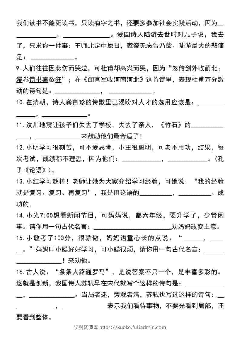 六年级下语文小升初古诗文名句语境默写学科资源库3天前发布关注私信308六年级下语文小升初古诗文名句语境默写此内容为付费资源,请付费后查看¥10黄金会员免费钻石会员免费立即购买您当前未登录!建议登陆后购买,可保存购买订单格式pdf页数18 页大小286.48 KB付费资源 ——预览已结束,还剩16页未读——开通会员后可免费下载高清完整文档 © 版权声明文章版权归作者所有,未经允许请勿转载。THE END小升初 喜欢就支持一下吧点赞8 分享QQ空间微博QQ好友海报分享复制链接收藏