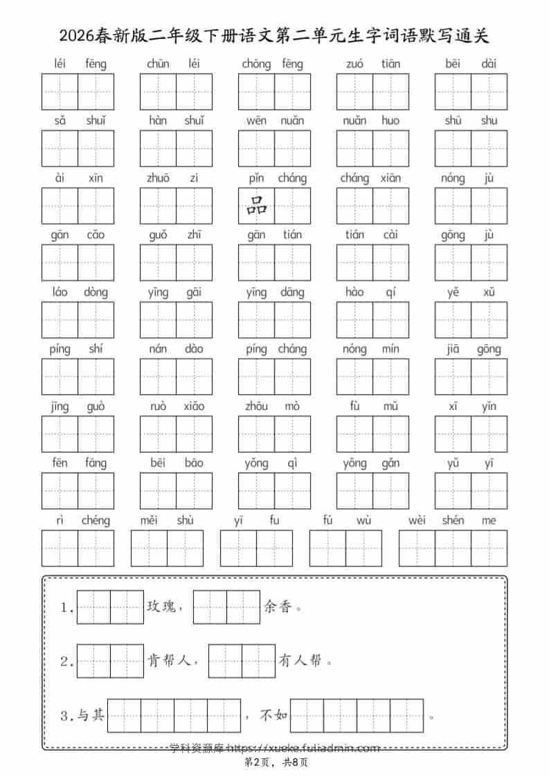 二年级下语文26春1-8单元生字词语默写通关(8页)学科资源库3小时前发布关注私信379二年级下语文26春1-8单元生字词语默写通关(8页)此内容为付费资源,请付费后查看¥10黄金会员免费钻石会员免费立即购买您当前未登录!建议登陆后购买,可保存购买订单格式pdf页数8 页大小3.58 MB付费资源 ——预览已结束,还剩6页未读——开通会员后可免费下载高清完整文档 © 版权声明文章版权归作者所有,未经允许请勿转载。THE END小学语文 喜欢就支持一下吧点赞9 分享QQ空间微博QQ好友海报分享复制链接收藏