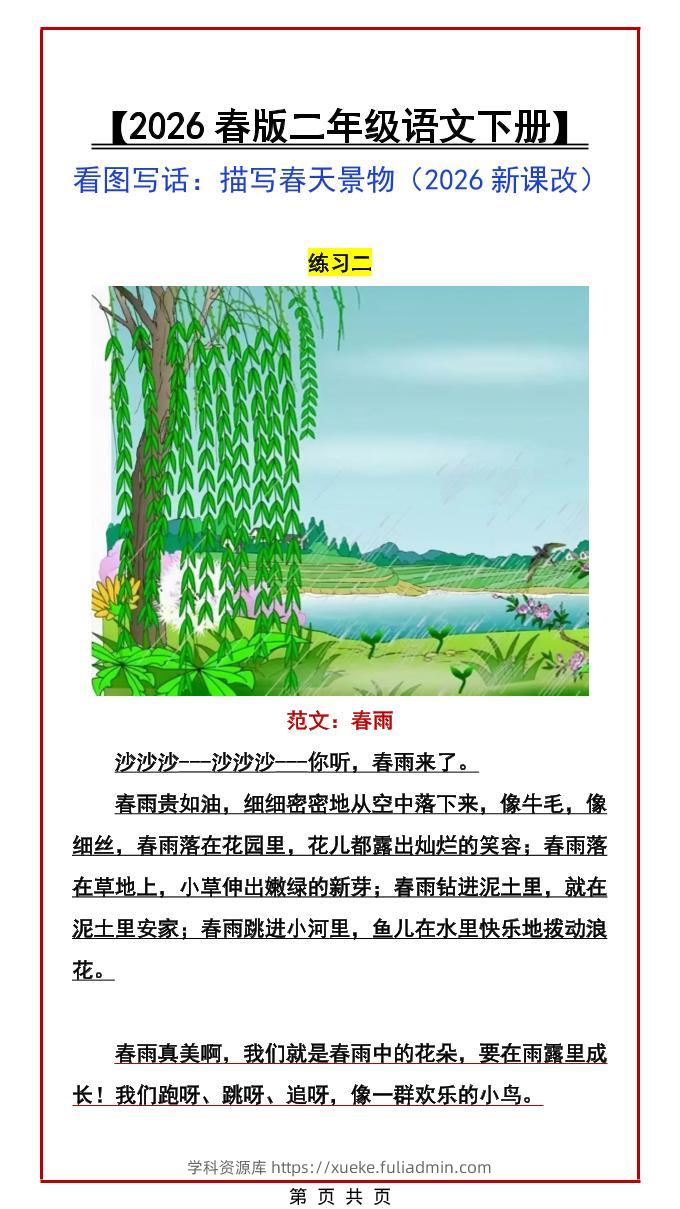 二年级下语文看图写话范文:描写春天景物学科资源库昨天发布关注私信4314二年级下语文看图写话范文:描写春天景物此内容为付费资源,请付费后查看¥10黄金会员免费钻石会员免费立即购买您当前未登录!建议登陆后购买,可保存购买订单格式pdf页数3 页大小532.56 KB付费资源 ——预览已结束,还剩1页未读——开通会员后可免费下载高清完整文档 © 版权声明文章版权归作者所有,未经允许请勿转载。THE END小学语文 喜欢就支持一下吧点赞14 分享QQ空间微博QQ好友海报分享复制链接收藏
