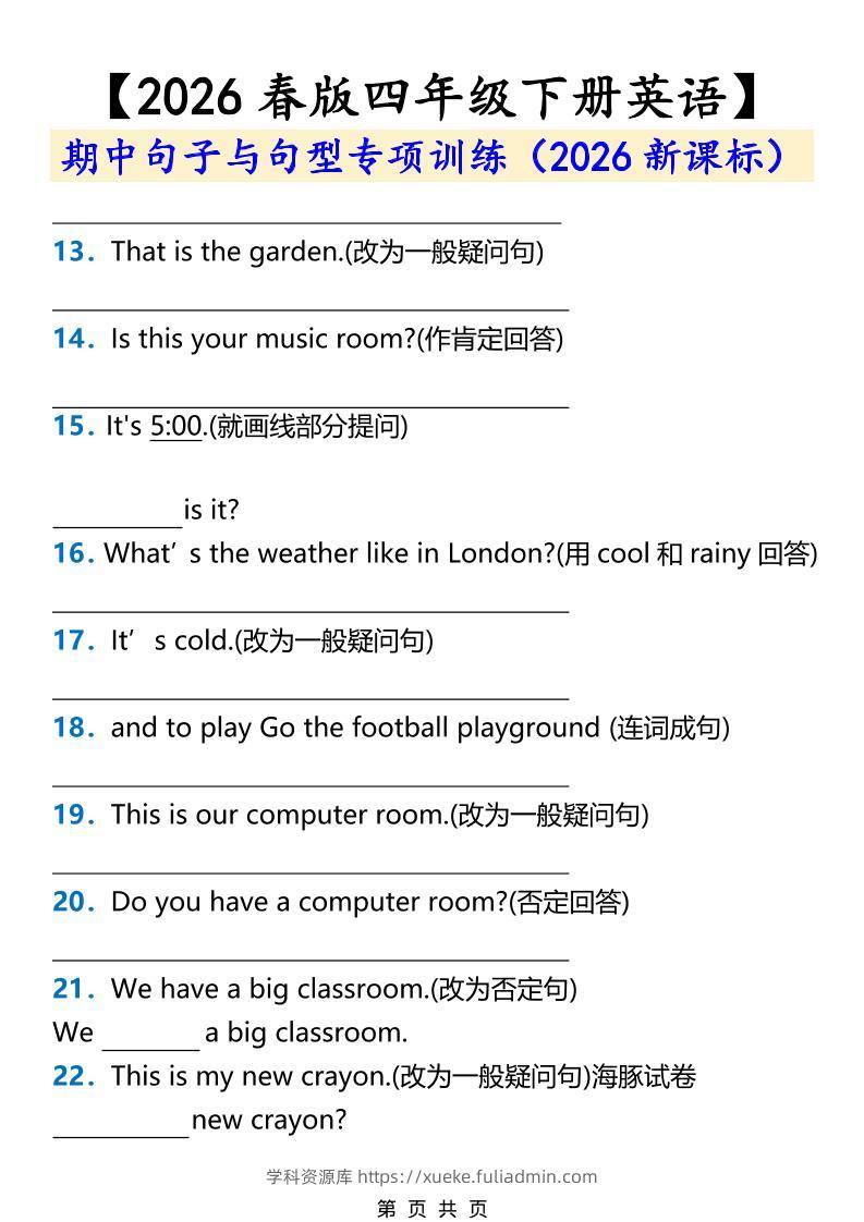 2026春新版四年级下英语期中句子与句型专项训练《人教版PEP》学科资源库6小时前发布关注私信3462026春新版四年级下英语期中句子与句型专项训练《人教版PEP》此内容为付费资源,请付费后查看¥10黄金会员免费钻石会员免费立即购买您当前未登录!建议登陆后购买,可保存购买订单格式pdf页数4 页大小134.65 KB付费资源 ——预览已结束,还剩2页未读——开通会员后可免费下载高清完整文档 © 版权声明文章版权归作者所有,未经允许请勿转载。THE END小学英语 喜欢就支持一下吧点赞6 分享QQ空间微博QQ好友海报分享复制链接收藏