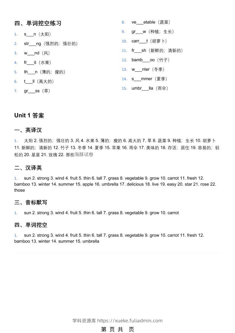 四年级下英语单词默写表(英译汉、汉译英、音标默写、单词挖空)《教科版》学科资源库昨天发布关注私信489四年级下英语单词默写表(英译汉、汉译英、音标默写、单词挖空)《教科版》此内容为付费资源,请付费后查看¥10黄金会员免费钻石会员免费立即购买您当前未登录!建议登陆后购买,可保存购买订单格式pdf页数16 页大小433.63 KB付费资源 ——预览已结束,还剩14页未读——开通会员后可免费下载高清完整文档 © 版权声明文章版权归作者所有,未经允许请勿转载。THE END小学英语 喜欢就支持一下吧点赞9 分享QQ空间微博QQ好友海报分享复制链接收藏