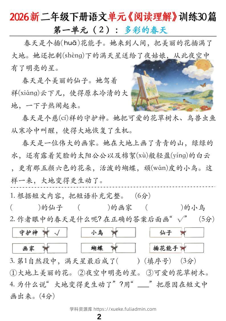 二年级下语文单元《阅读理解》训练30篇学科资源库3小时前发布关注私信327二年级下语文单元《阅读理解》训练30篇此内容为付费资源,请付费后查看¥10黄金会员免费钻石会员免费立即购买您当前未登录!建议登陆后购买,可保存购买订单格式pdf页数30 页大小14.49 MB付费资源 ——预览已结束,还剩28页未读——开通会员后可免费下载高清完整文档 © 版权声明文章版权归作者所有,未经允许请勿转载。THE END小学语文 喜欢就支持一下吧点赞7 分享QQ空间微博QQ好友海报分享复制链接收藏